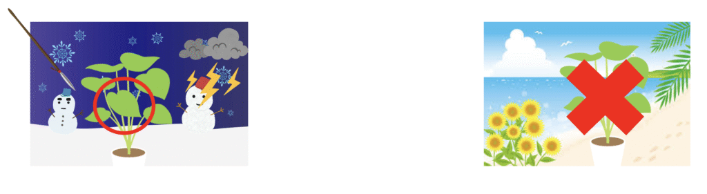 - しかし、この植物を、その性質に合わない厳しい暑さの環境で育てるとなると、スクスク育てるためにはかなり難しさがあります。しっかりと根を張る前に、暑さに負けて枯れてしまう可能性が高いでしょう。